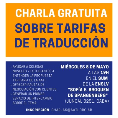 Considerando esta inquietud puntual, que es común a todos/as los/as traductores/as en algún punto de sus carreras, preparamos una charla orientada a estudiantes, noveles y traductores/as con experiencia laboral que aún tengan dudas sobre cómo manejarse con tarifas.