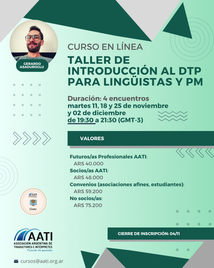 CERRADO: Taller práctico de introducción al DTP para lingüistas y PM